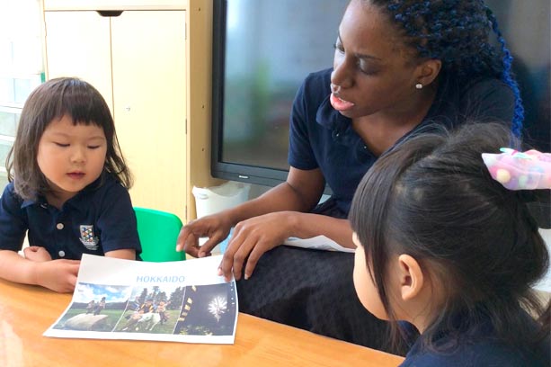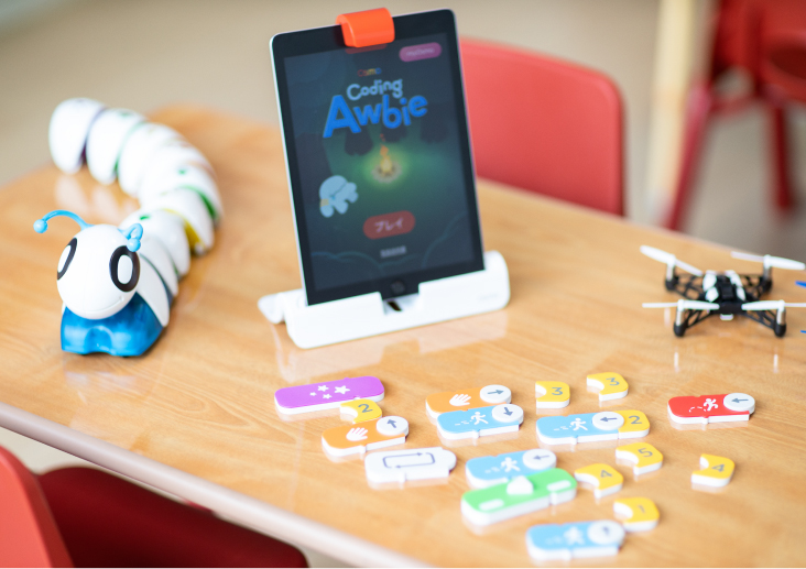 タブレットPCやロボット教材、理科や社会、算数からのトピックを通して、習って慣れた英語を「試す」ことで、英会話力の定着を目指します。アクティビティやグループディスカッションなどでしっかり身に着くまで英語を繰り返し使います。